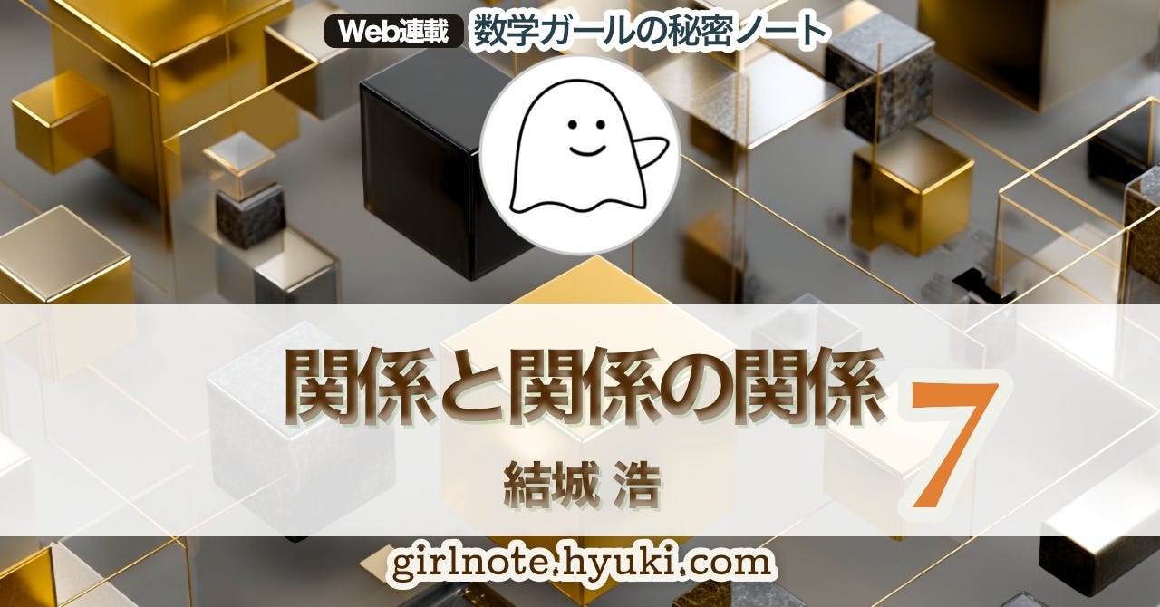 《関係》を《集合》で表すところから、《集合》の《関係》に進む「僕」とテトラちゃん。抽象的な思考にめげることなく、テトラちゃんは《例示は理解の試金石》でチャレンジします。