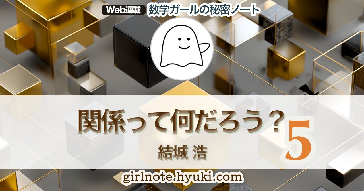 順序構造を探るシーズンもいよいよ折り返し。今回はテトラちゃんのターンです。《関係》について語り合うテトラちゃんと「僕」。順序も、大小も、相似も、すべて《関係》。でも《関係》って何だろう。数でもないし、図形でもない……
